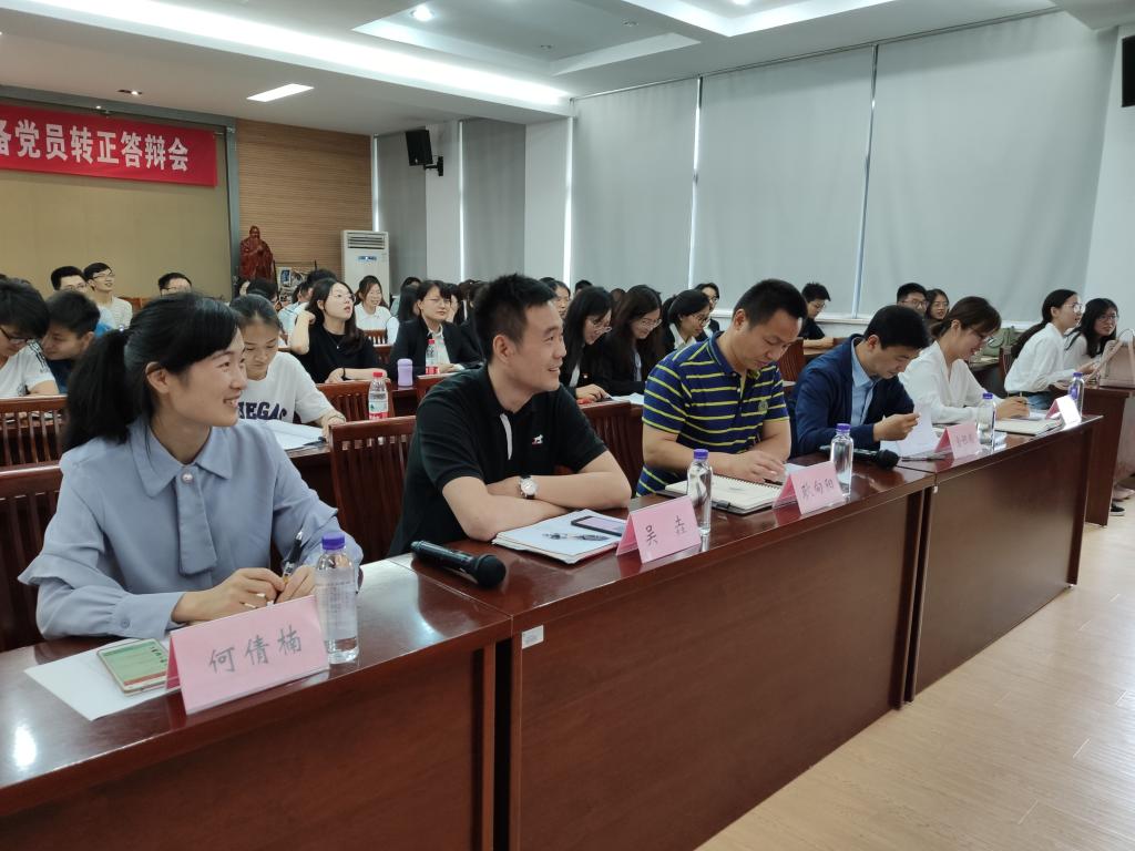2019年上半年,学院共有41名同志预备期满,其中毕业班党员24名,学院特别安排了毕业生专场转正答辩会。答辩会包括学生汇报展示和提问两个环节。24名预备党员从自己在预备期中的思想、工作、学习以及不足之处等方面作了汇报。在思想上,预备党员始终以马克思主义武装自己,积极学习习近平总书记系列重要讲话,认真研读党章党史,不断提升自己的思想觉悟。在工作学习中,预备党员同志们孜孜不倦,用知识武装自己,为肩负中华民族伟大复兴夯实基础。对答辩老师的提出的涉及十九大精神、习近平总书记对青年人的希望等时政热点问题,他们都对答如流。答辩老师也根据学生学业成绩、宿舍卫生情况,综合素质等方面进行考量,从党性觉悟、理论学习以及先锋模范作用的发挥等方面进行了点评和鼓励。