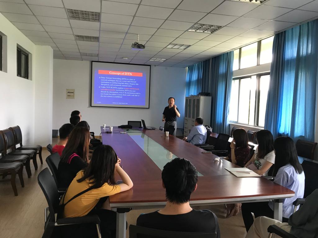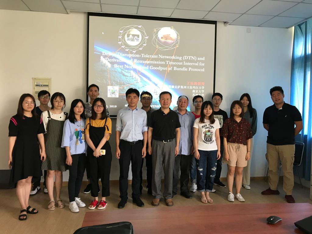 近日,拉玛尔大学王汝海教授应邀来到物联网工程学院,在学院D308会议室,做了一场题为《深空通信容迟/容断网络技术和束协议中达到最佳归一化有效吞吐量的重传时间间隔推导方法》的学术报告。报告会由电子工程系吴琼老师主持,学院师生代表出席了报告会。