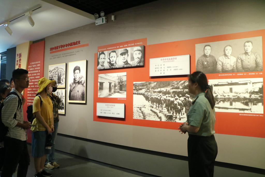 实践的第一站,同学们怀着崇敬的心情来到了盐城新四军重建军部旧址。这里曾是新四军重建军部和中共中央中局机关所在地。门楼正中央挂着“N4A从这里崛起”几个大字,大家的记忆一下子回到了70多年前。在讲解员的带领下,同学们逐一参观展厅,展厅内陈列着不少新四军各部队坚持敌后抗战的历史文物。有陈毅、刘少奇的照片和书信,有战士们穿过的衣服,有重要历史人物的题词,那一张张真实的照片、一封封激昂的书信、一件件沧桑的实物,真实地记录着新四军当年艰苦奋斗的历程和革命先烈们奋力抗争、不畏牺牲的英勇精神。参观完展厅,来到了新四军司令部作战室,“现在来到的是新四军司令部作战室,军参谋长赖传珠在此办公……”同学们认真听讲解员洪亮而生动的解说。这里张贴的地图、陈列的历史实物反映着党和人民的奋斗历程。通过这些真实的场景,大家更加感受到了新四军敌后抗战的艰辛,同时,对这段历史也有了更加深刻的了解!