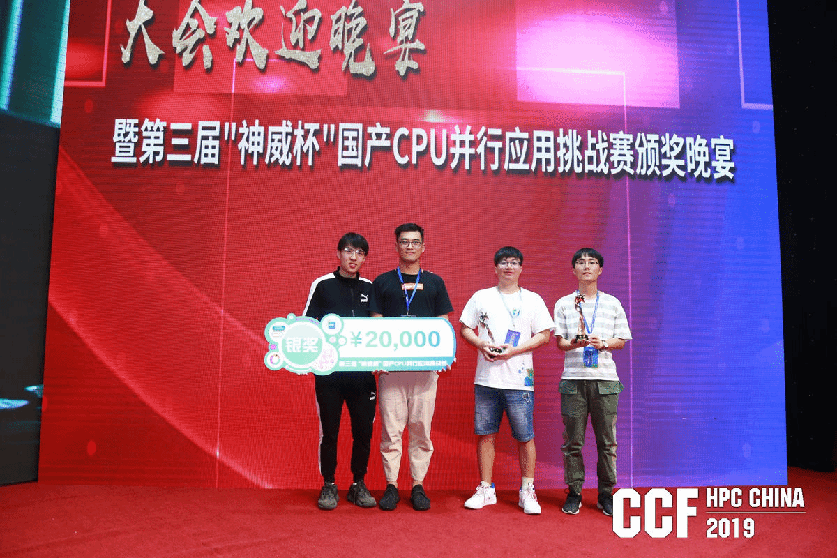 我校由物联网工程学院柴志雷老师指导的两支队伍代表江南大学参加了该赛事并获得了一银一铜的好成绩。其中由物联网工程学院及纺织服装学院研究生袁鸣、刘旭、陈宏博、李文组成的“太湖神鼋”队荣获银奖;由计算机科学与技术等专业本科生叶钧超、赵海旭、孙瑞鑫组成的“江大TEAM”队荣获铜奖。两只获奖队伍均由江南大学超级计算俱乐部组织及培训。江南大学超级计算俱乐部由柴志雷老师创建于2018年10月,目标是通过培训及大赛培养学生的并行编程能力。