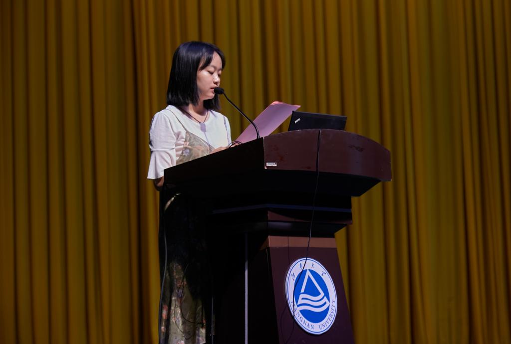老生代表姜逸翔对19级新生们的到来表示热烈的欢迎,他认为大学是同学们提升自己能力的快车道,要知道自己想做什么,能做什么,明确自身的定位,科研竞赛,社会实践等无不是同学们展现自我风采的舞台。希望同学们学会独立,要渐渐离开自己的舒适圈,减少对父母的依赖,敢于去认识新的人,接触新的事物。新生代表樊鑫艳呼吁全体新生不忘初心、严于律己、学有所成、学有所用,享受大学四年的生活和学习。