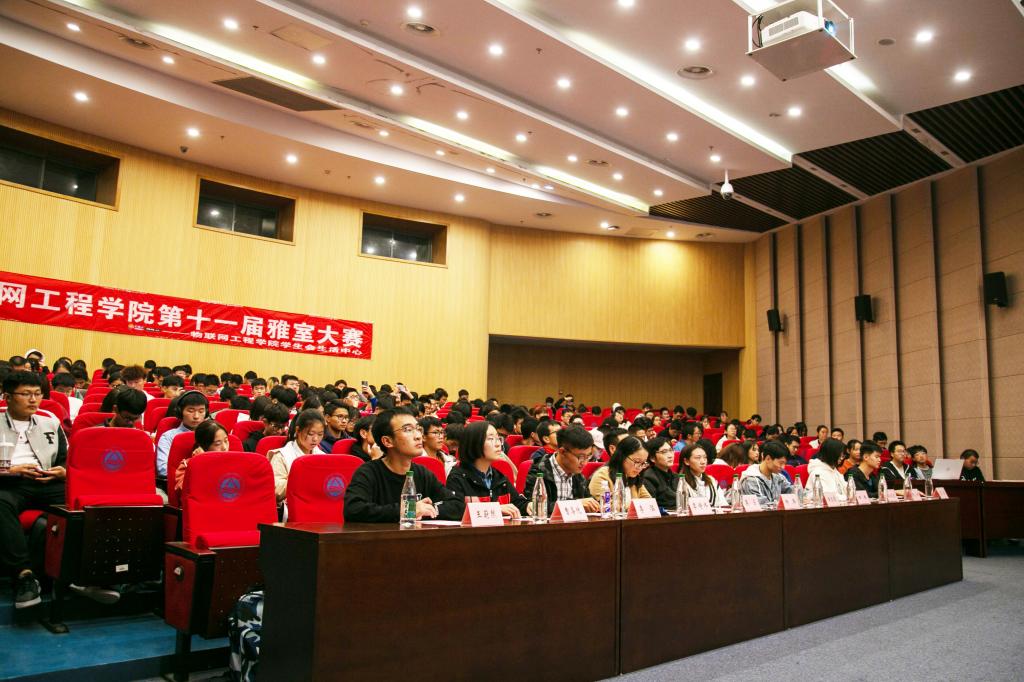 近日,江南大学物联网工程学院第十一届雅室大赛在远东报告厅隆重举行。参加本次大赛的嘉宾有物联网工程学院团委书记吴垚,研究生辅导员杨兵,2019级辅导员李诗炜、李猛,生活中心指导老师侯玉莹,校团公寓副主席田鹏,策划部部长张淼飒,物联网工程学院学生会副主席曹喜悦、王蔚然、孙成龙、张恒。到场的还有入围宿舍所在的班级成员以及各班宿舍长。本次比赛的主持人是黄怡嘉同学和马晓龙同学。