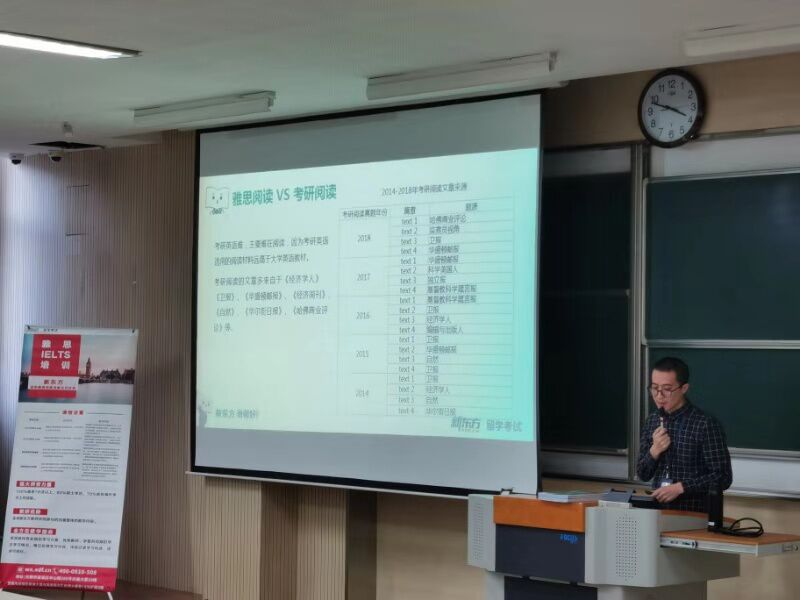 12月4日下午,由物联网工程学院学习促进中心组织的唯实讲坛大学英语第一期在一教1b103举办,本次唯实讲坛由无锡新东方国外考试部教师丁洋主讲,物联网工程学院各专业学生踊跃参加。