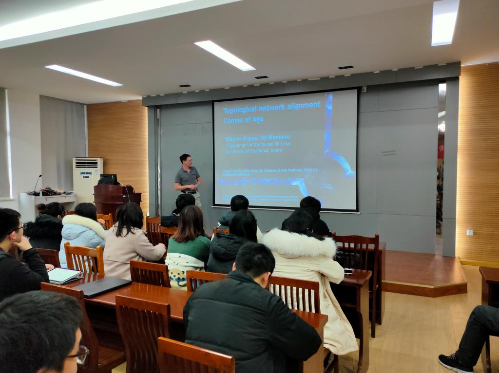 1月8日上午,加州大学尔湾分校教授Wayne B. Hayes应邀来到物联网工程学院B310学术报告厅,做了题为《Local and Global Network Structure of Protein-Protein Interaction Networks》的要闻。报告会由陈璟老师主持,吸引了物联网工程学院、生物工程学院、理学院等学院部分师生参加。