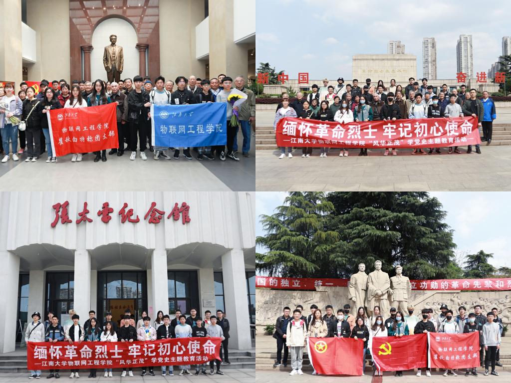 4月10日,江南大学青山退休第三党支部退休教师,物联网1901瞿秋白特称团支部、以及控制科学与工程硕士党支部的同学共赴常州参加了以“瞻仰革命烈士、传承红色基因”为主题的学党史主题教育活动。师生们先后参观了瞿秋白纪念馆、张太雷纪念馆,并赴常州烈士陵园开展了缅怀革命先烈的活动。青山退休第三党支部书记赵曾贻、物联网工程学院分团委书记吴垚带队参加本次活动。