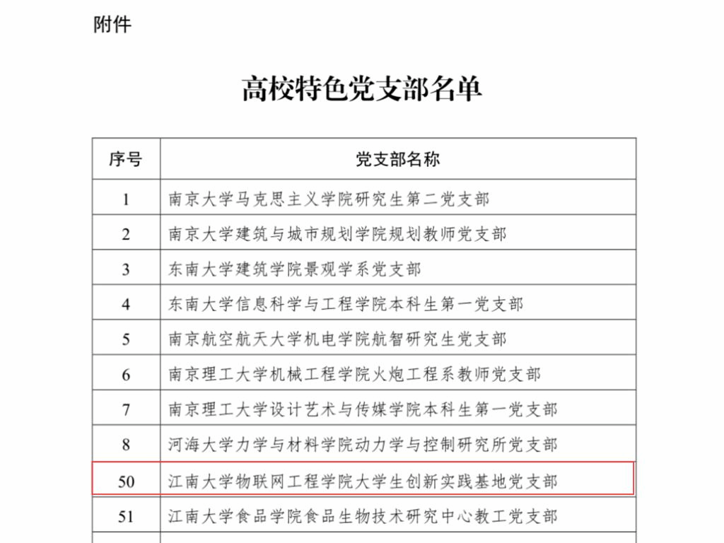 物联网学院大学生创新实践基地党支部荣获“江苏高校特色党支部”称号