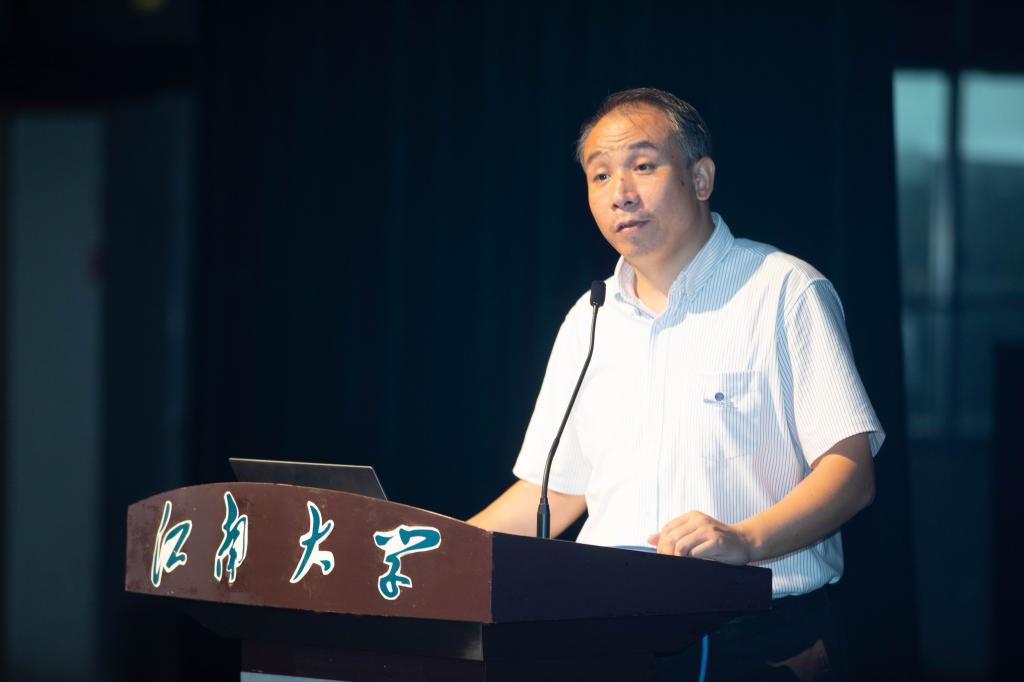 典礼结束后,本学期“听·院长说”系列活动正式开讲。院长谢林柏作《奋进成就未来》专题分享。他以学校的历史沿革为切入点,将学院的发展历程向大家娓娓道来。他指出,江南大学的发展、物联网工程学院的建设离不开广大师生员工长期以往艰苦创业、立德树人,走出了“因轻而立、依轻而兴、靠轻而强”的发展道路,迈上了建设“世界知名、中国一流、江南风格的研究型大学”的新征程。最后,谢林柏还针对学校“奋进计划”及学院“十四五”建设目标为大家进行解读,一个个任务书、一张张施工图,擘画蓝图绘美景,谢院长勉励学生不断突破自我,以“奋进”精神融入“奋进”的物联、“奋进”的江南!