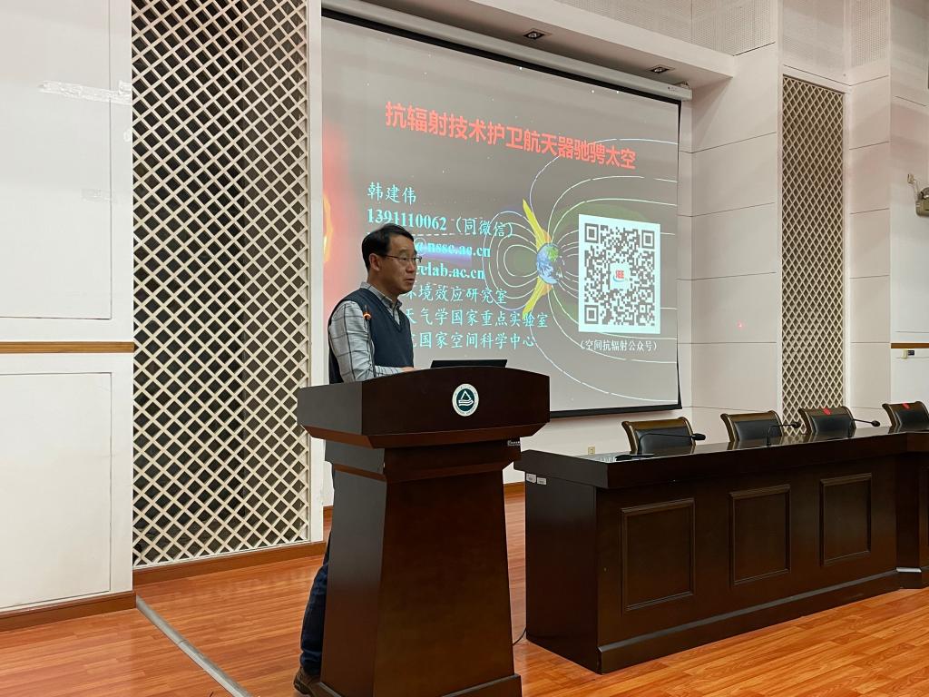 韩建伟以中科院国家空间科学中心的发展历程及其职责使命为切入点,从光辉坎坷的航天历程、历练问天者的“妖魔鬼怪”、护卫航天——你我大展神通这三个方面,通过列举国内外近十余年在轨航天器的故障案例,全面介绍了以单粒子锁定效应、深层充放电效应为首的空间环境辐射对在轨航天器的危害。他指出,空间辐射环境是航天器在轨运行的重要制约因素之一,如何开发和应用抗辐射技术,对保障航天器的安全可靠性和寿命非常重要。针对这些空间辐射,韩建伟重点介绍了我国航天器抗辐射技术的发展历程和取得的成就,并结合多个中科院国家空间科学中心深度参与的航天任务和自主研发的单机设备,展示了中国航天器抗辐射技术在实际应用中的优势和成果。