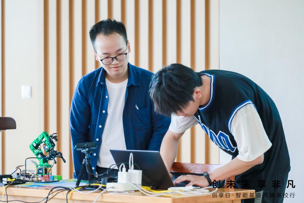 主题演讲环节,华为江苏鲲鹏昇腾生态创新中心CTO谭涛以《数智未来因你而来》进行主题分享,他表示以多任务和泛化性为代表的大模型是AI科研创新走向产业应用的重要枢纽。训练营环节,华为昇腾AI高级工程师张孟航介绍了华为将要发布的Atlas 200l DK A2深度学习边缘计算开发者套件,讲解了基于昇腾开发者套件动手组装的机械臂抓取应用的案例。现场还进行了机械臂演示及互动体验活动。