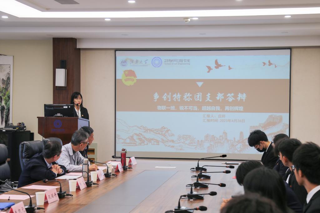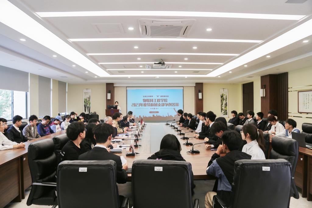 为进一步强化基层团组织活力,发挥先进团组织的示范引领作用,近日,物联网工程学院特称团支部争创答辩活动在学院B222会议室举行。学院党委副书记、副院长孔丽丹,关工委委员吴锡生、朱凯元、赵曾贻、刘营生,分团委书记洪筱,2022级本科生辅导员王涛、曾磊担任评审,各争创团支部代表70余人参加活动。活动在昂扬的团歌中开始。