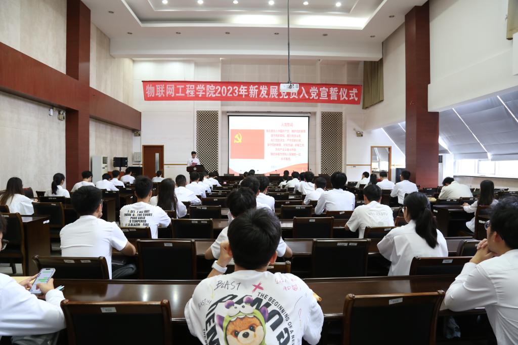 物联网工程学院党委十分重视党员的仪式教育和党性教育,在“七一”来临之际举行入党宣誓仪式,希望新党员能够增强荣誉感、责任感和使命感,敢于成为时代的奋斗者、奉献者和追梦者,在披荆斩棘中奋勇前行,为青春交上一份完美的答卷。