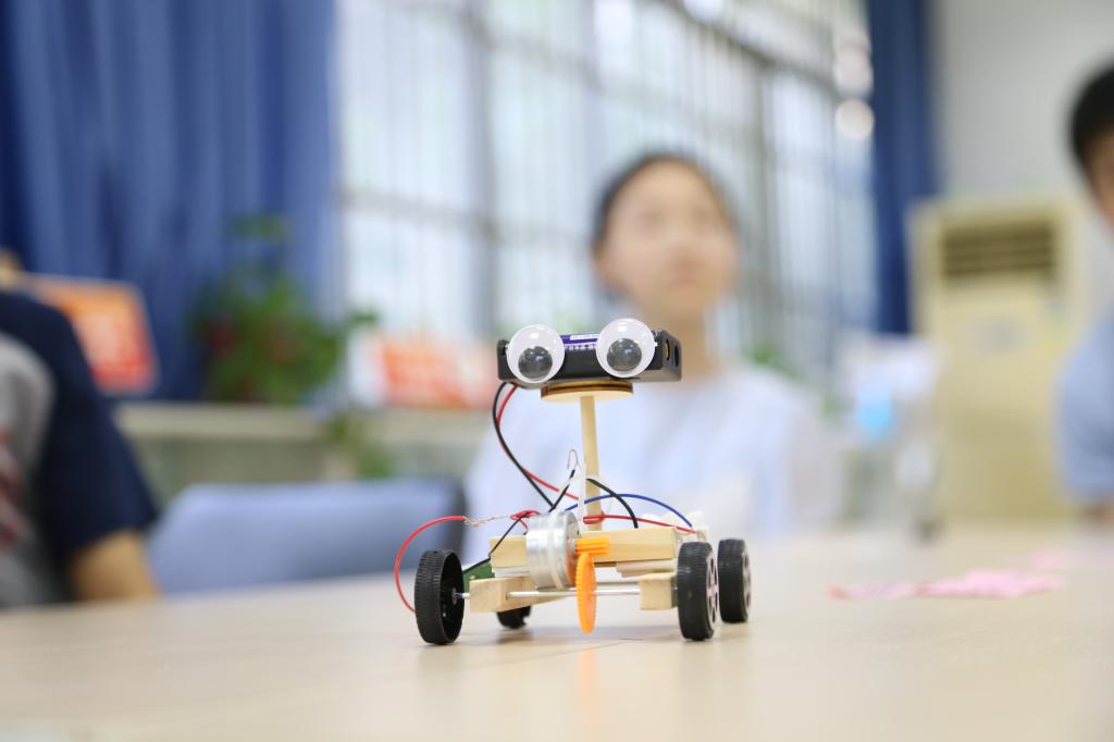 小朋友动手完成的声控智能小车作品