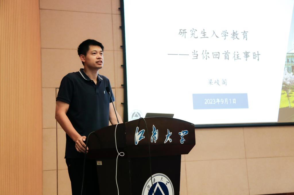 梁峻阁围绕研究生科研道德和培养计划进行专题教育。他详细介绍了学院丰富的学术资源和学科平台,强调了在研究生阶段积极参与专业实践和科研工作的重要性,鼓励新生找到适合自己的学术节奏。此外,他还详细介绍了导师双选、培养阶段时间节点等重要事项,为新生提供了清晰的学术规划和指引。