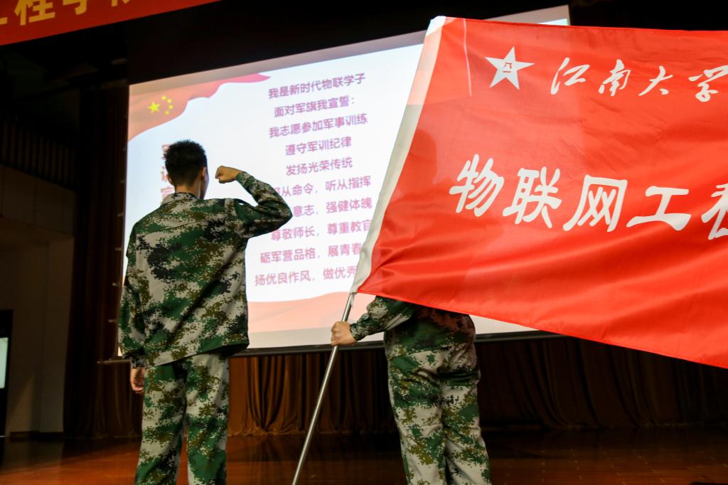 最后,全体参训学生面对军训旗庄严宣誓。在铿锵有力的军训誓词中,全体参训新生激情澎湃,火热军旅气,串起物联心,物联学子必将凝心聚力,勇毅前行,以青春之名燃奋斗之火,扣好大学时代的第一粒扣子,迈好大学生活的第一步。
