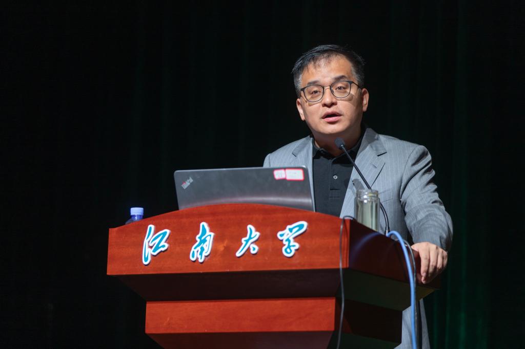 9月24日上午,物联网工程学院“宝哥说”新生入学教育专场讲座在文浩馆观众厅举行。马克思主义学院唐忠宝教授受邀作《我为什么反对虚无主义——从佛系、丧、空心病说起》的专题报告,学院2023级全体新生参加了本次活动。讲座由学院党委副书记、副院长孔丽丹主持。