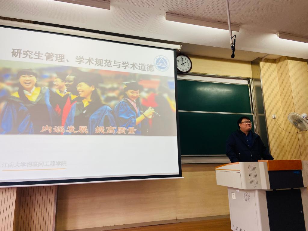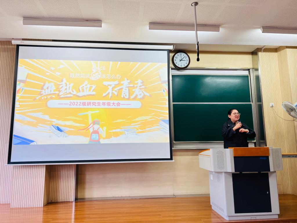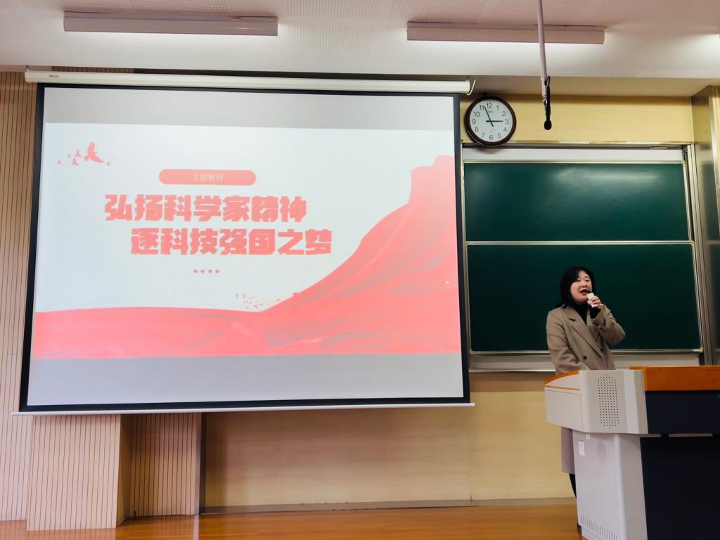 11月14日下午,物联网工程学院“唯实讲坛”系列要闻第115期“弘扬科学家精神,逐科技强国之梦”在一教B103举行。物联网工程学院党委副书记兼副院长孔丽丹、电子工程系副教授万茜出席活动,近300名2022级研究生参会。活动由研究生辅导员王雪冰主持。