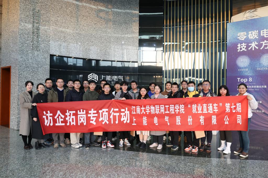 为助力2024届毕业生高质量充分就业,近日,物联网工程学院学工办主任兼分团委书记洪筱,辅导员王雪冰、沈滔,带领2024届毕业生代表前往上能电气股份有限公司开展“访企拓岗促就业”专项行动。上能电气股份有限公司人力行政总监刘德龙、解决方案部副总经理王莉、中试部总经理吴亚平、HR招聘主管俞海霞、HR培训主管苏寒萼等出席本次活动。