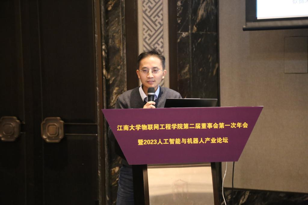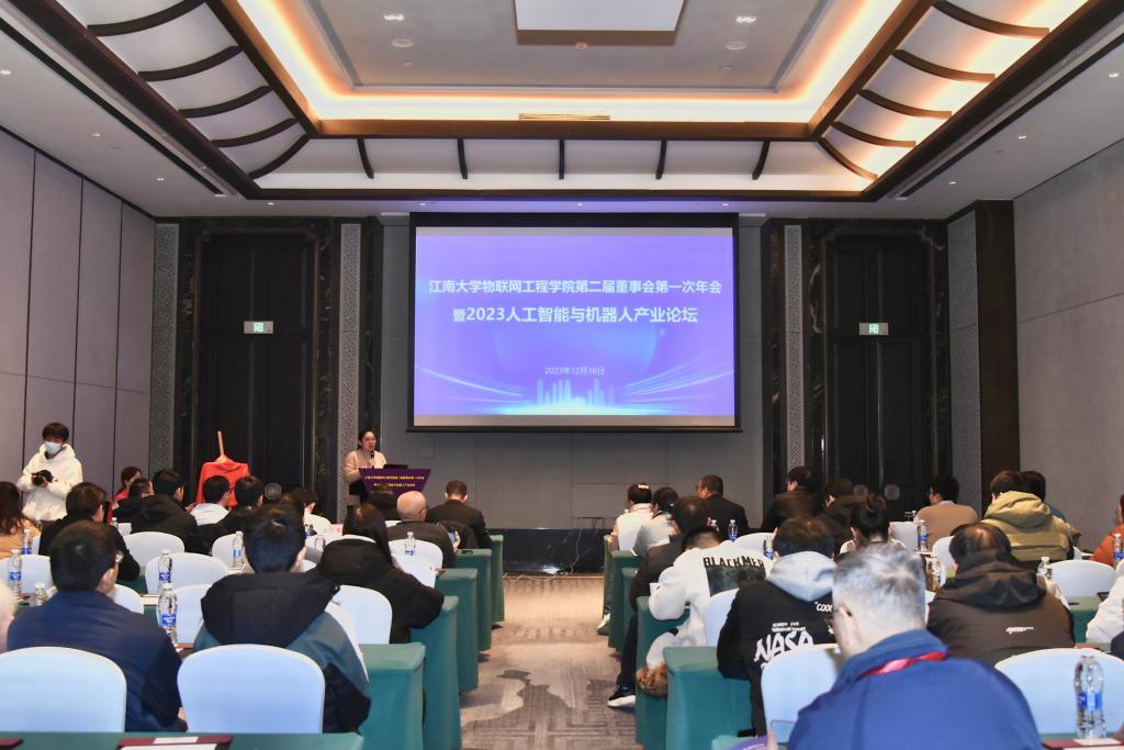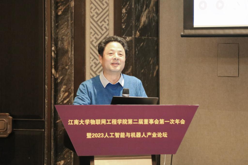12月16日下午,物联网工程学院第二届董事会第一次年会暨2023人工智能与机器人产业论坛成功举办。物联网工程学院党委书记耿向阳,无锡市自动化协会理事长、原通信与控制工程学院党委书记杨慧中,江南大学科研院副院长樊启高,物联网工程学院党委副书记兼副院长孔丽丹以及来自董事单位、校友企业及协会单位的19家企业代表30余人参加了此次活动。论坛由孔丽丹主持。