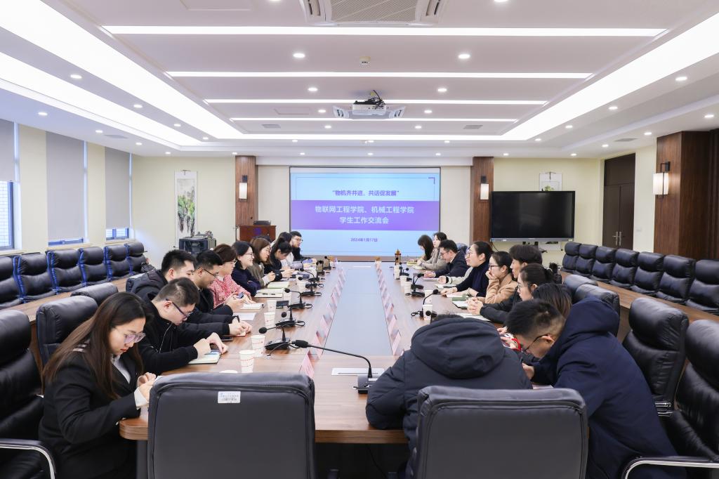 1月17日上午,物联网工程学院与机械工程学院共同举办的“物机齐并进,共话促发展”学生工作交流会在物联网工程学院B222会议室举行。物联网工程学院党委副书记、副院长孔丽丹,机械工程学院党委副书记、副院长刘升恒,以及双方学院全体辅导员参会。