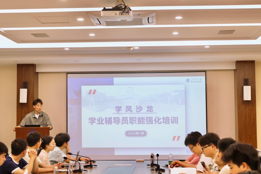 6月4日,物联网工程学院在B222会议室举办学业辅导员职能强化培训活动。学风扎口辅导员谢幸福主持会议并做主要培训,微电子2101班吕文娟作为优秀学业辅导员代表受邀分享工作经验,60余名学业辅导员深度参与。