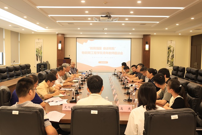 在中华人民共和国成立七十五周年之际,为进一步学习贯彻党的二十届三中全会精神和全国教育大会精神,9月30日上午,物联网工程学院在B222会议室召开“教育强国 奋进有我”青年教师座谈会,一起畅谈新中国建设成就,畅想教育强国愿景,畅叙立德树人使命。校关工委常务副主任娄国栋,校关工委顾问、青年教师导师燕庆明,校党委常委、统战部部长、工会主席朱飞,校关工委副秘书长吴骥一,校党委教师工作部副部长陈炜昀,校关工委青年教师导师杨慧中,院关工委常务副主任吴锡生,院关工委委员朱凯元,学院党委书记张华,副院长郭亚,学院各系部主任、院长助理、近三年入职青年教师代表等20余人参加座谈会。会议由张华主持。