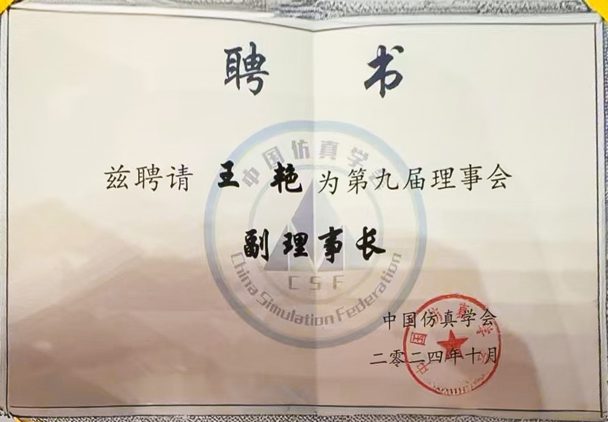 我校王艳教授当选中国仿真学会第九届理事会副理事长