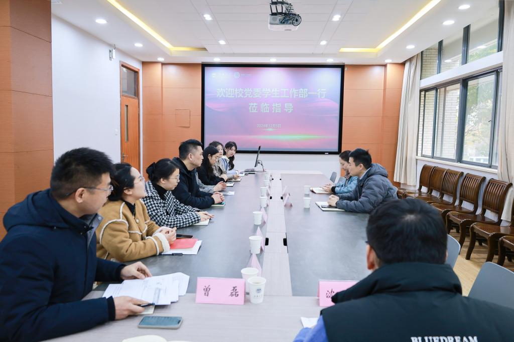 张华代表学院对党委学生工作部一行的到来表示热烈欢迎,向党委学生工作部一直以来对学院学生工作的指导与帮助表示衷心感谢。他简要介绍了学院概况,并分析了学院人才培养工作面临的新形势与新问题。他表示,希望学院进一步加强与职能部门的联动交流,打破壁垒,以学风建设为依托,精细化推进学院学生工作,为学院高质量人才培养奠定坚实基础。