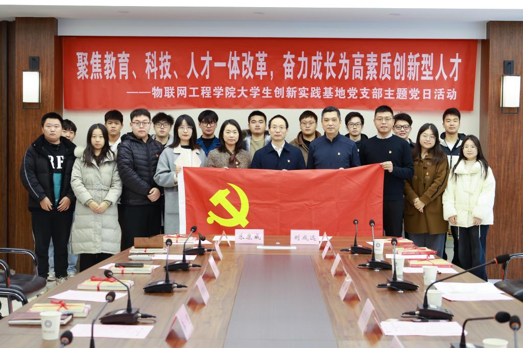 12月24日上午,物联网工程学院大学生创新实践基地党支部(以下简称“大创党支部”)在学院B222会议室开展“学习党的二十届三中全会精神:聚焦教育科技人才一体改革,奋力成长为高素质创新型人才”主题党日活动。江南大学党委常委、副校长堵国成,物联网工程学院党委书记张华,物联网工程学院党委副书记兼副院长吴妍及大创党支部全体师生党员参加活动。活动由支部纪检委员、专职辅导员屈跃宽主持。