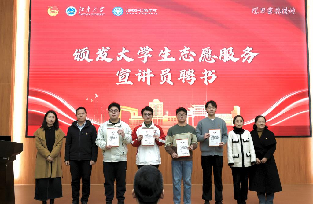 3月5日,正值第62个“学雷锋纪念日”与第26个“中国青年志愿者服务日”,物联网工程学院“我是物联追‘锋’者”志愿青春分享会暨2025年“学雷锋”主题活动月启动仪式在D328报告厅顺利举行。江南大学团委副书记单云婷、无锡市滨湖区团委副书记肖江、江南大学学生工作处学生管理科科长杨艳、物联网工程学院党委书记张华、党委副书记吴妍、分团委书记洪筱等出席活动,学院各年级辅导员与学生代表共同参与活动。活动由电气工程23级研究生吴雪主持。