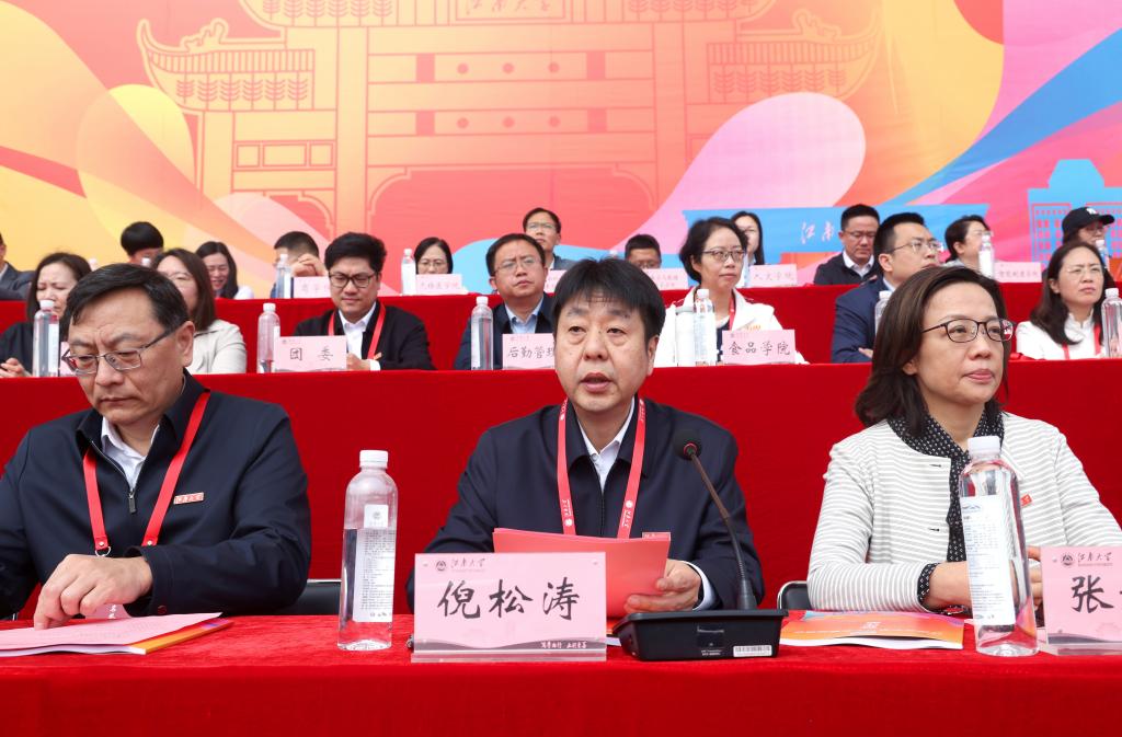 4月10日上午,江南大学蠡湖校区中心体育场彩旗飘扬,气氛热烈,第二十五届运动会开幕。