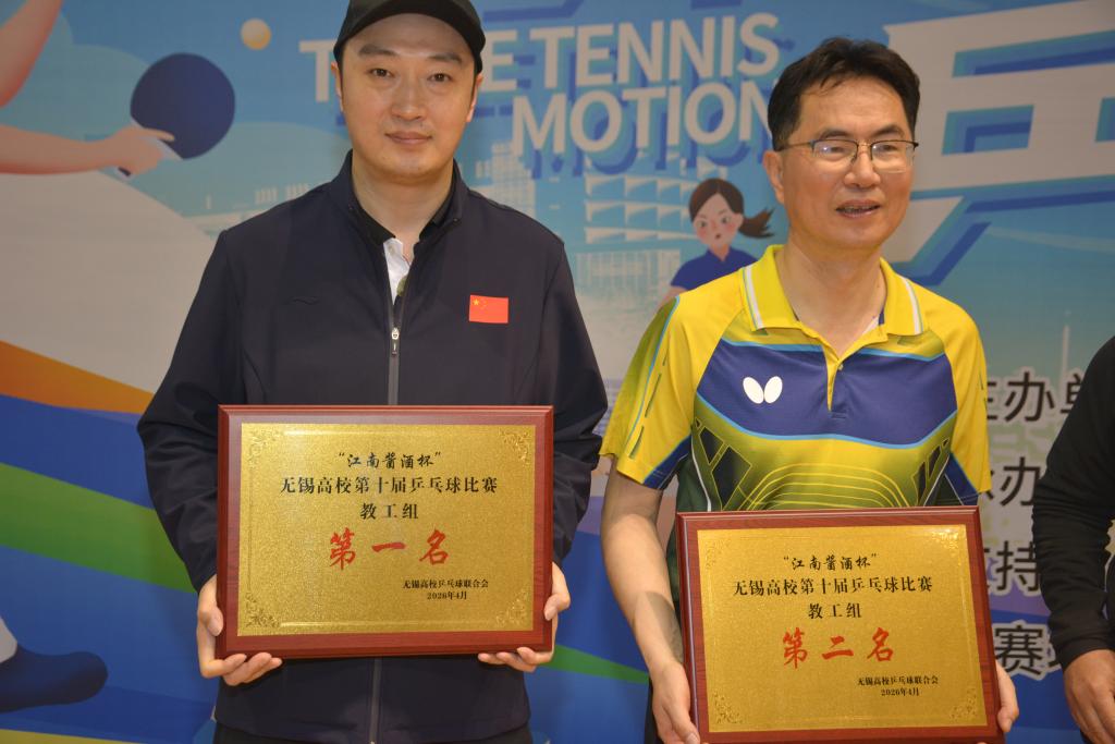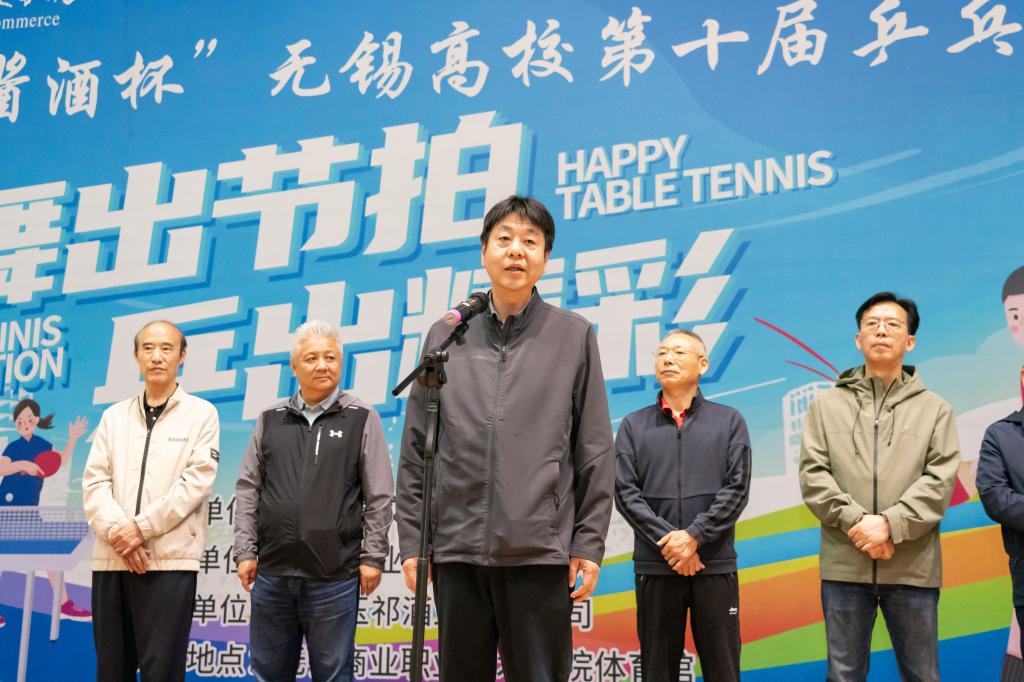 4月17日,“江南酱酒杯”无锡市高校第十届乒乓球比赛在无锡商业职业技术学院举行。来自无锡市(含江阴市、宜兴市)的14个高校组建的14支教工队和13支学生队分别展开了激烈的角逐。我校教工队夺得冠军,学生队获得亚军。校党委副书记倪松涛带队并致开幕辞,校党委常委、副校长戴月波,原副校长徐岩,顾正彪,堵国成以及部分乒乓球教师和学生“健将”等参加了比赛。