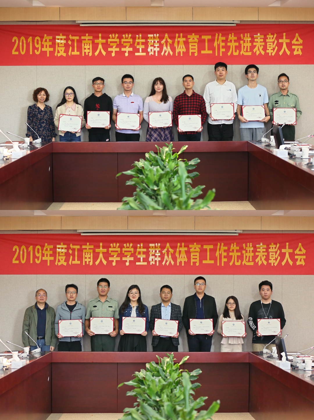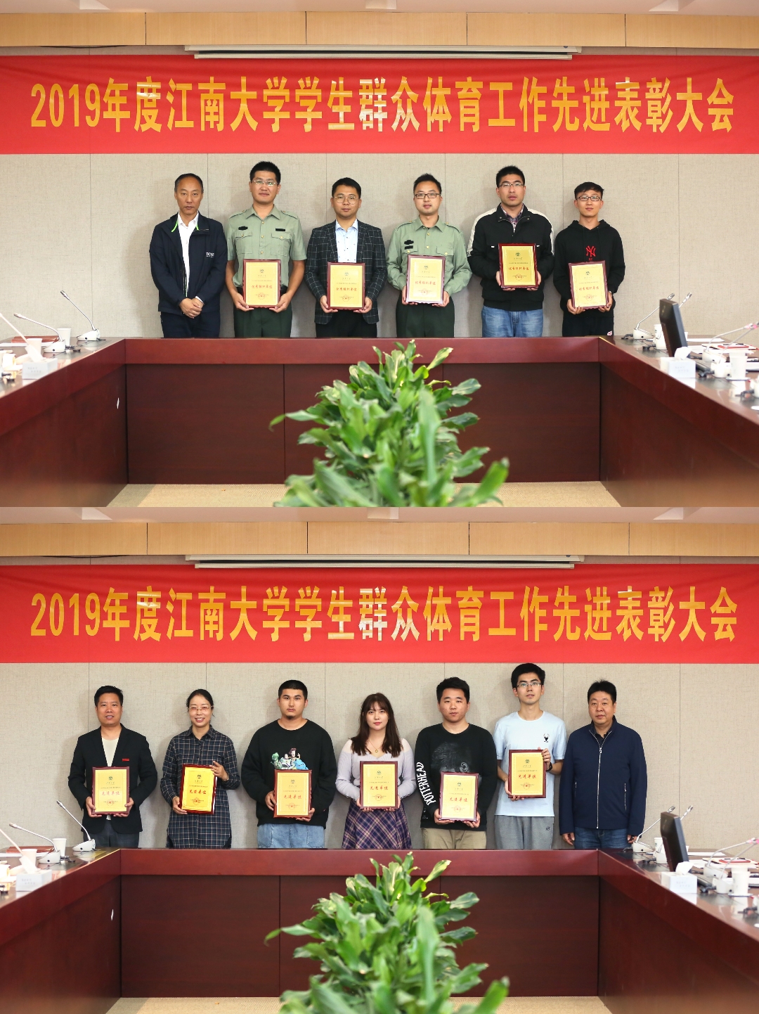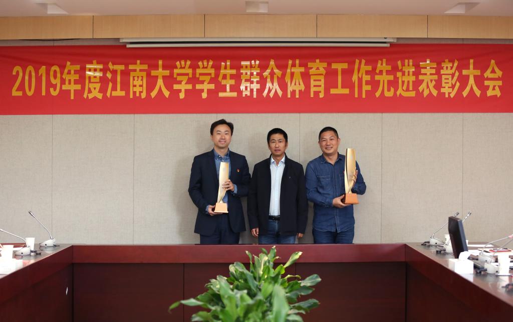 首先,校体育运动委员会副主任徐学明宣读了《关于表彰2019年度江南大学学生群众体育工作先进单位、优秀组织单位和先进个人的决定》。戴月波为荣获2019年度“何振梁”杯的商学院与生物工程学院颁奖;党委常委倪松涛、朱飞和校体育运动委员会副主任徐学明、黄壮霞分别为其他获奖单位和个人颁发奖牌和荣誉证书。会上,体育部副主任戴平就本学期将举办的“同心抗疫、健康江南”校园马拉松活动的时间、参赛范围、分组情况、具体组织、防疫措施等工作进行了介绍。
