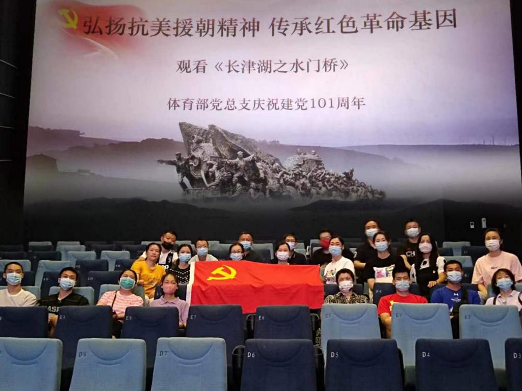 为弘扬抗美援朝精神,持续营造党史学习教育的浓厚氛围,在中国共产党建党101周年生日当天,体育部党总支组织党员开展主题党日活动,观看了《长津湖之水门桥》,一起重温波澜壮阔的历史,教育引导全体党员传承抗美援朝精神。