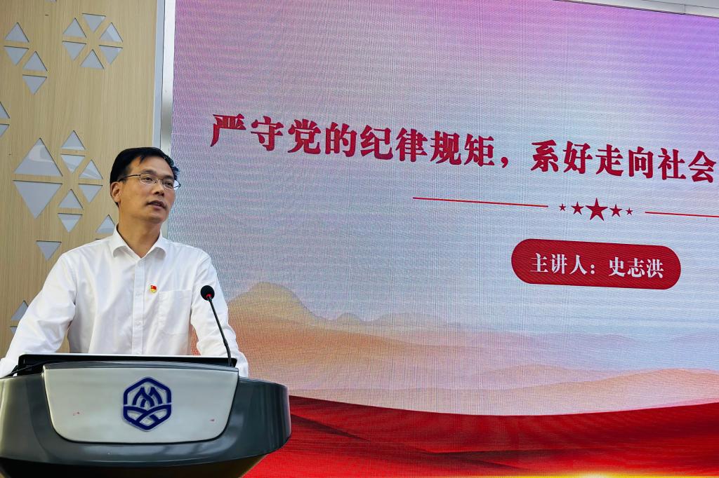 史志洪以“严守党的纪律规矩,系好走向社会‘第一粒扣子’”为主题,为毕业生党员讲授廉洁党课。他肯定了2025届毕业生党员队伍取得的丰硕成果,期待同学们在新的征程上继续步履不停、赓续担当。史志洪结合深入贯彻中央八项规定精神学习教育的要求,寄语毕业生党员要以案为鉴,从中央八项规定读懂“全面从严治党”的政治深意,系紧廉洁从业“第一粒扣子”;要以规明责,对照中央八项规定筑牢廉洁从业防线,永葆清廉本色,力戒形式主义,抵制奢靡之风;要以行践诺,让中央八项规定精神在职业生涯中绽放光芒,做政治上的“明白人”,做作风上的“示范者”,做监督上的“战斗员”。