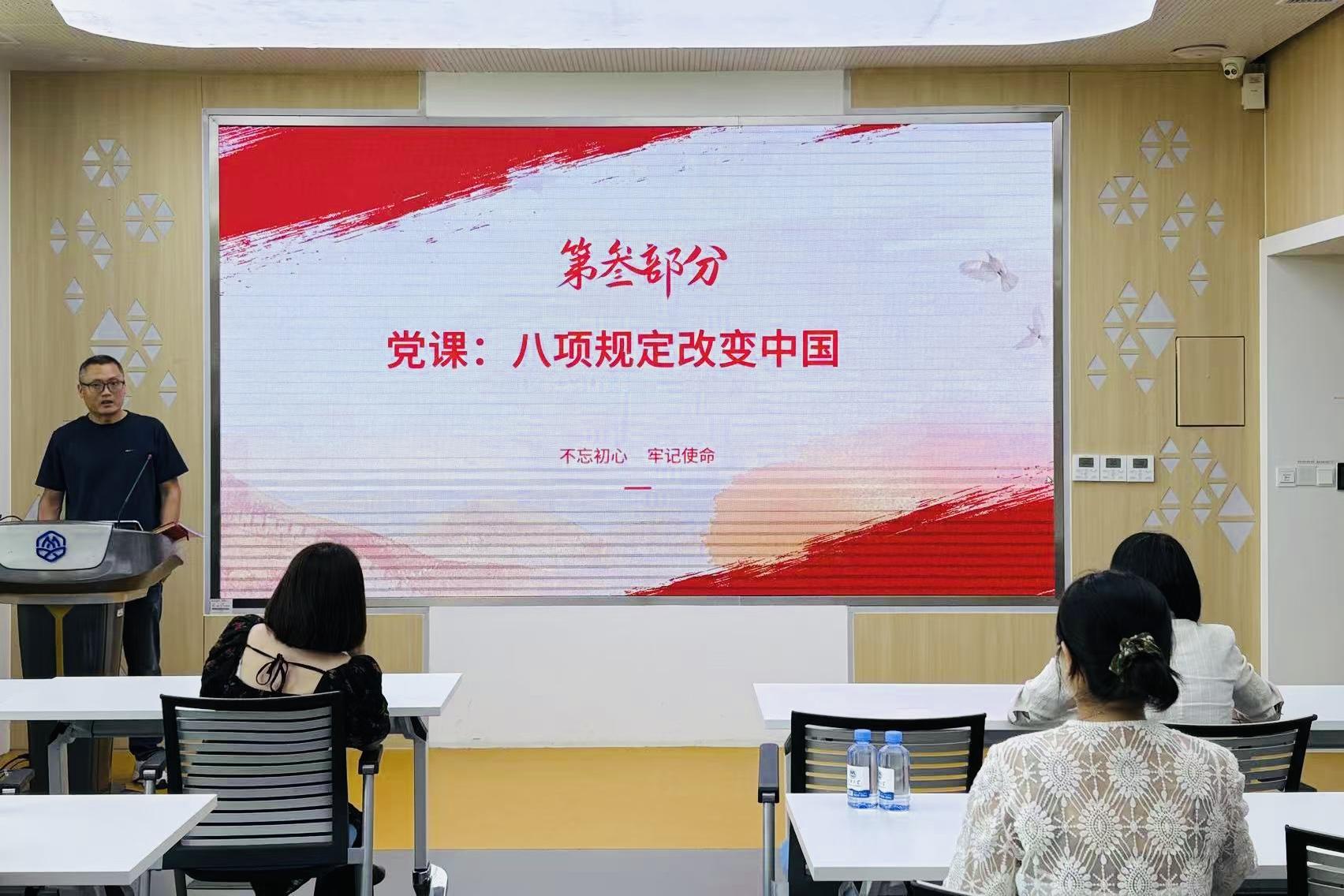 会议伊始,巩凯传达了学院党支部书记(扩大)会议精神,聚焦“锲而不舍落实中央八项规定精神,一体推进‘学查改’”“完善网上党支部工作记录,推动党支部标准化规范化建设”等内容,为全体党员明确了下一步工作的方向与重点。随后,巩凯领学《纪言:八项规定改变中国》《党的十八大以来深入贯彻中央八项规定精神的成效和经验》等内容,通报违反中央八项规定精神典型问题,深入阐释“作风建设永远在路上”的深刻内涵,强调党员教师要将“严”的主基调贯穿教育教学全过程,以优良作风引领师德师风、带动院风学风。党员教师们围绕“贯彻落实中央八项规定精神,推动教育教学工作高质量发展”主题,分享心得、碰撞思路。