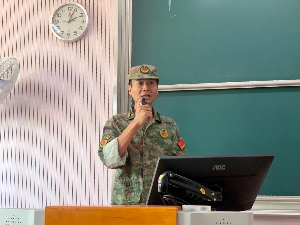 刘璇刚科长以“军训是为了什么?”引发新生思考,阐述了军训不仅是体能的锤炼,更是一堂深刻的国防教育课。他援引“木兰从军”的典故,鼓励同学们感悟历史、献身国防,并将这份责任感转化为训练中的坚韧与执着。同时,他强调团结是团队胜利的基石,期待每位同学在心往一处想、劲往一处使的集体中相互成就、共同成长。