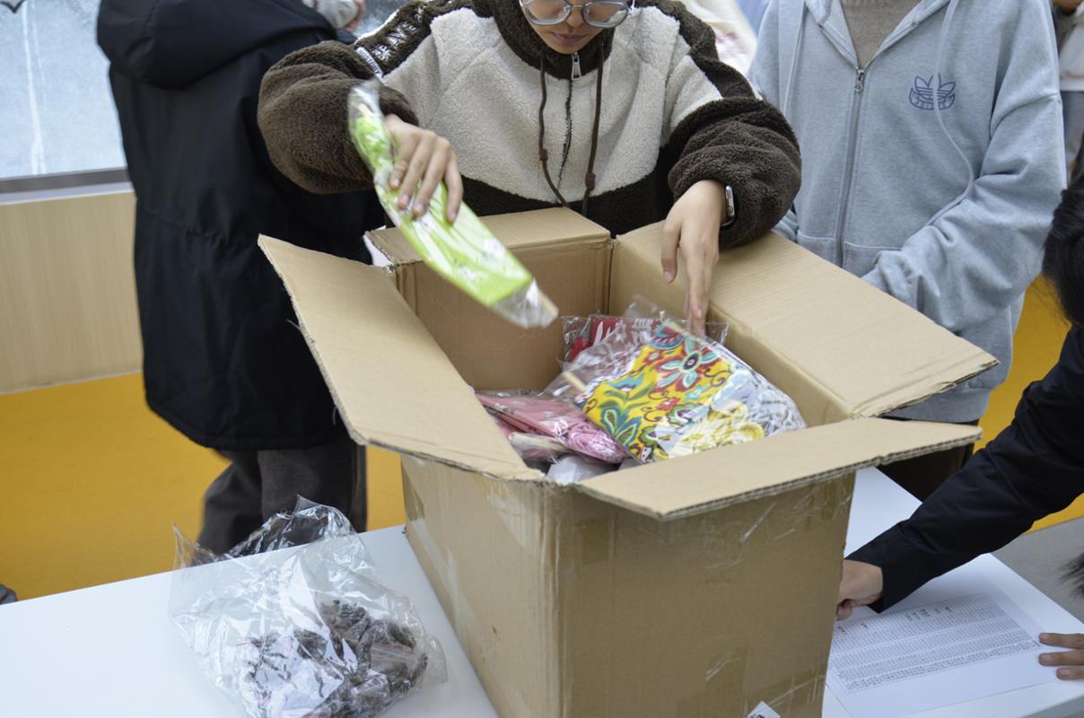 同学们统一领取了活动筹备组精心制备的艾草锤制作材料包。包内艾绒、棉布、绳线、剪刀等制作物料一应俱全。领取材料后有序就座,静候主持人开启活动介绍,为后续制作环节做好充分准备。