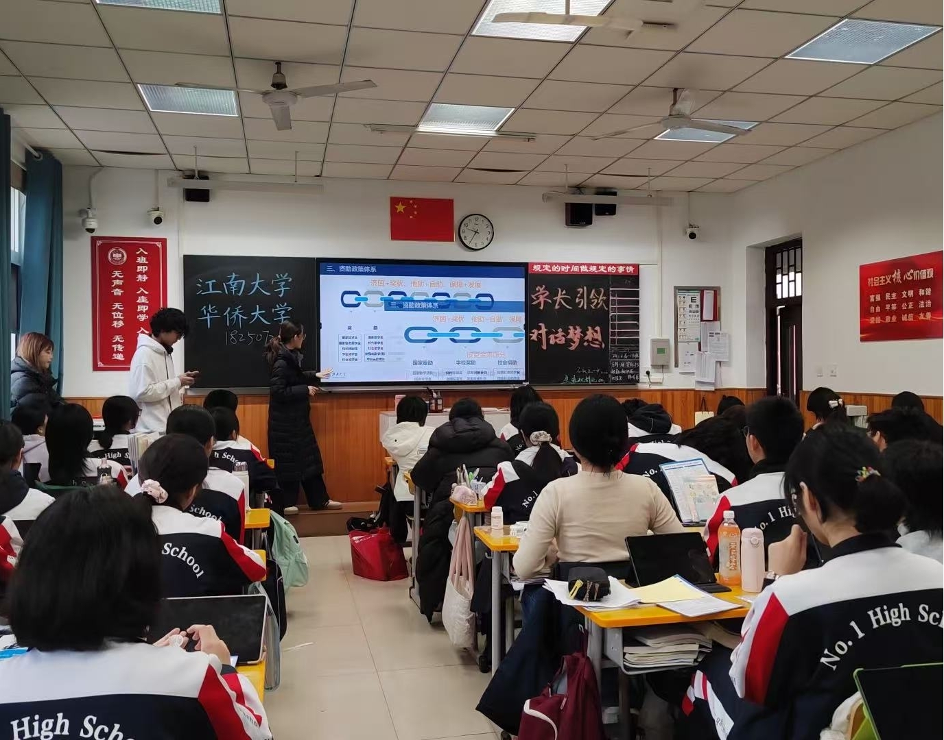 国家奖学金获得者刘焱嫣、陈俭莺走进石家庄市第一中学,面向高中学子及家长开展线下专项宣讲,精准送达资助关怀与升学指导。团队创新采用“政策讲解+亲身分享+现场答疑”形式,分层分类解读国家与校内资助政策,清晰阐释校地资助政策衔接方式,详细介绍学校为家庭经济困难学生提供的全方位帮扶保障措施。二人结合从石家庄一中备考到步入江大的成长历程,讲述在资助政策支持下安心求学、参与竞赛、融入校园的真实故事,传递自强不息的青春态度。针对“资助申请时间”“勤工助学安排”等问题,她们逐一细致解答,现场互动热烈,家校反馈良好。作为江大学子,他们更将“笃学尚行,止于至善”的校训精神融入宣讲,分享新时代大学生的成长故事。
