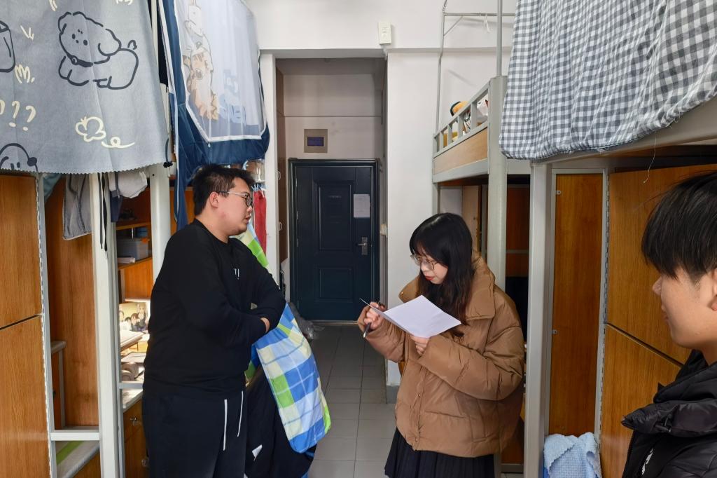 新学期伊始,辅导员深入学生宿舍,加强宿舍安全教育。走访过程中检查学生宿舍卫生情况、用电安全等情况,提醒学生随着天气变暖要开窗通风,注意宿舍卫生。同时,辅导员询问学生返校适应情况、学业规划等,鼓励大家及时调整状态,结合上学期考试情况做好学习规划,引导学生互帮互助、共建和谐宿舍。