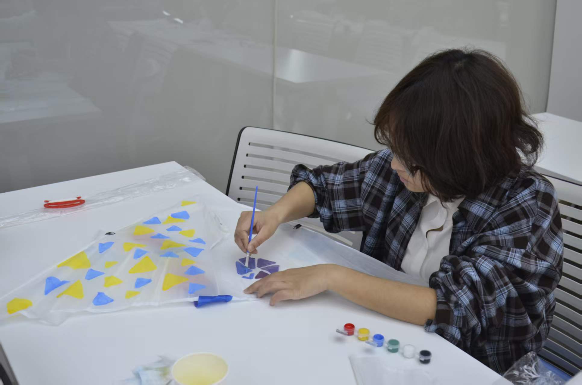 进入自由制作环节,同学们全神贯注、动手创作,认真打造属于自己的风筝。绘画时,大家以中药材为创作主题,将自身的不良情绪与对应功效的药材巧妙结合,既展现了专业特色,又在创作中实现了心理调适。大家还在风筝上写下理想、烦恼与美好寄语,现场欢声笑语不断,心中的烦恼也在笔墨挥洒间悄然消散。