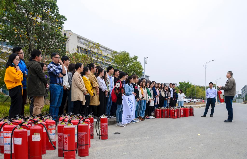 保卫处消防科涂东科长详细介绍了干粉灭火器的使用方法和面对突发火情的处置方法,面对突发火警要沉着冷静、不要惊慌,小火用灭火器材及时扑灭,大火应立即撤离到安全位置并马上报警。