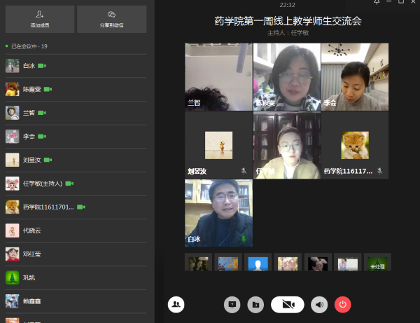 为了进一步聆听学生反馈,加强经验交流,提升教学效果,针对开学一周以来的教学情况,药学院于2月28日通过企业微信召开了线上教学工作师生交流会。参会人员有各班学习委员、学生会学促中心成员、学院领导、教学秘书、教师代表和辅导员。会议由党委副书记、副院长白冰主持。