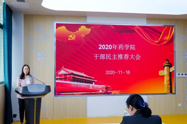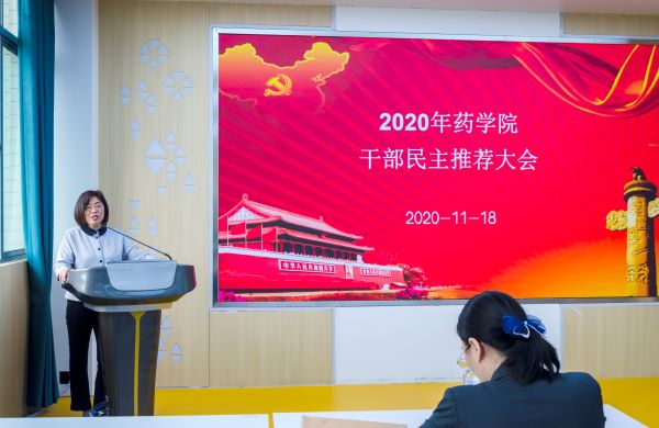 根据校党委组织部的工作安排,11月18日下午,药学院在改造一新的306会议室即阿斯利康厅召开了2020年干部民主推荐大会。江南大学党校专职副校长兼党委组织部副部长周雪晖、正科级组织员孙颖来院开展推荐和考察工作,全院教工参加了大会。大会由党委书记陈霞雯主持。