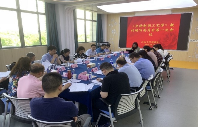 会上,药学院副院长李会代表江南大学药学院致欢迎词。主编江南大学教授史劲松、武汉轻工大学教授陈平分别就生物制药发展简史、本书撰写的主要内容、基本原则以及本书的撰写初衷和编委会的成立过程做概述报告。化学工业出版社编辑褚红喜就教材编写原则、注意事项、出版流程等细节做要求。本次编委会议详细讨论确定了《生物制药工艺学》的两个篇章、十八个章节的内容纲要,确认了《生物制药工艺学》编委会成员,并完成了任务分配和时间节点安排,正式启动该教材的编撰工作。