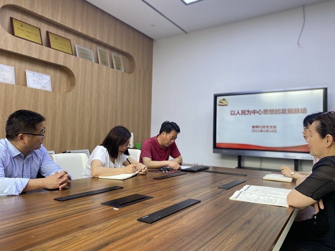6月18日上午,教师行政党支部开展支部书记讲党课学习活动,党课的主题是“以人民为中心思想的发展脉络”,由行政支部书记徐贻学主讲,行政支部全体党员参加,学院党委联系人、党委副书记白冰参加学习活动。