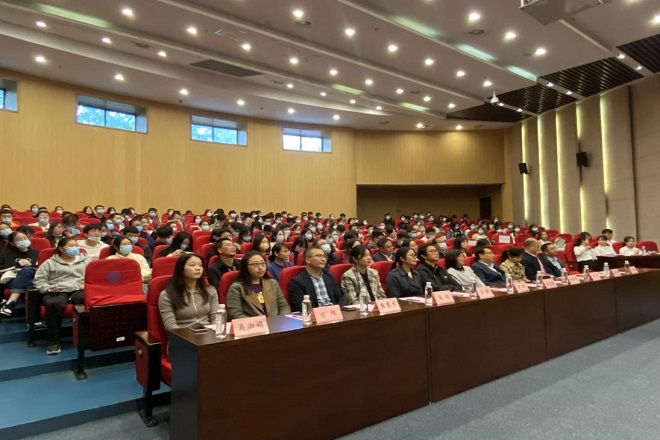 11月5日下午,药学院2021级新生开学典礼暨入学教育活动在远东报告厅举行。药学院党委书记陈霞雯,药学院院长、生命科学与健康工程学院(筹)院长陈敬华,生命科学与健康工程学院(筹)执行院长兼药学院副院长尹健,党委副书记、副院长蒋艳,副院长李会、吴静、杨子毅,药学系主任邱立朋,教授代表耿燕、林军、王文龙、张晓梅、周志及新生班主任出席典礼,学生副班主任及2021级全体本科、研究生新生参与此次活动。活动由学院分团委书记王珏主持。