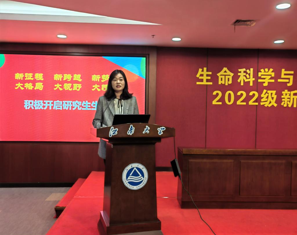 随后,蒋艳以《新跨越新梦想 积极开启研究生生活》为主题开展研究生入学转型教育。她围绕研究生学习与科研、研究生党建、研究生心理健康等方面内容,剖析了研究生阶段的学业特点和方法,解读了党建工作流程和要点,引导学生们重视身心健康,激励同学们厚植家国情怀、敢于探索勇于创新、慎始敬终行稳致远,期待每位研究生与生科院的这场相约,能成为自己人生中精彩、自信、难忘的篇章。