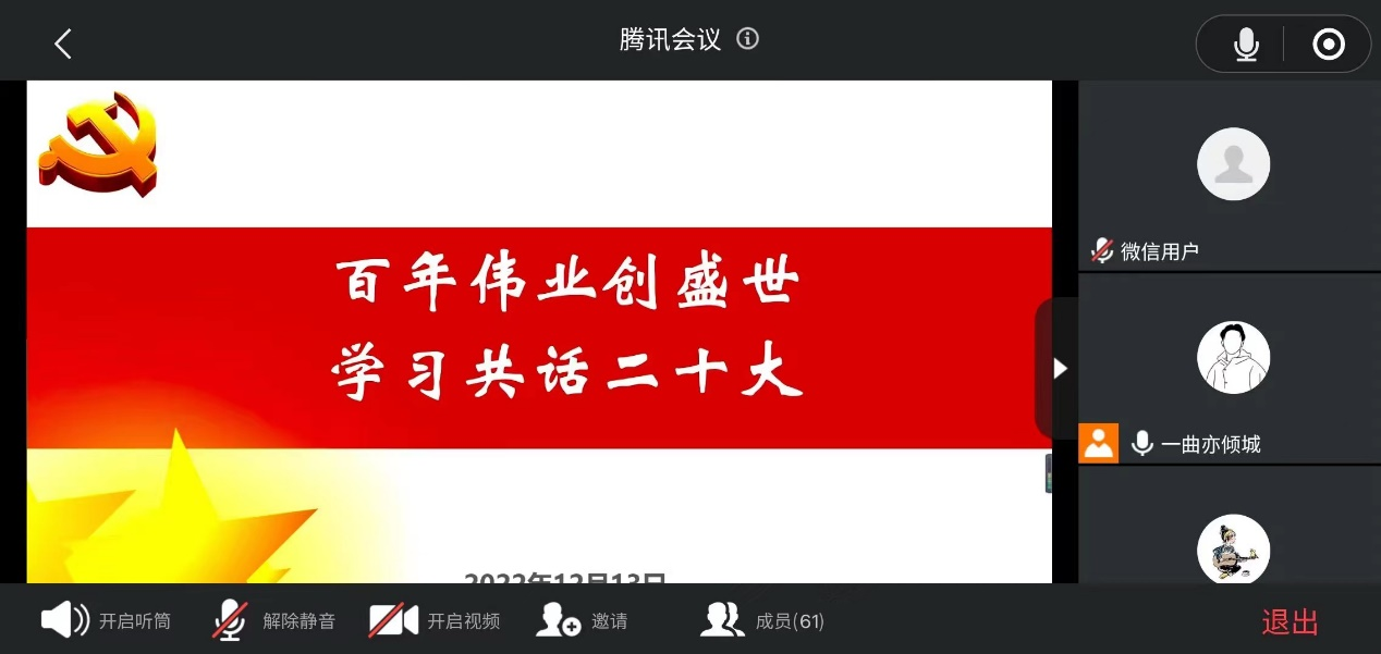 12月13日下午,生命科学与健康工程学院研究生第一党支部与中国电信中网科无锡分公司党支部开展党建联盟共建活动,一起通过腾讯会议的形式开展党课学习,其他没有课程的学生支部党员也一起参与了线上活动。