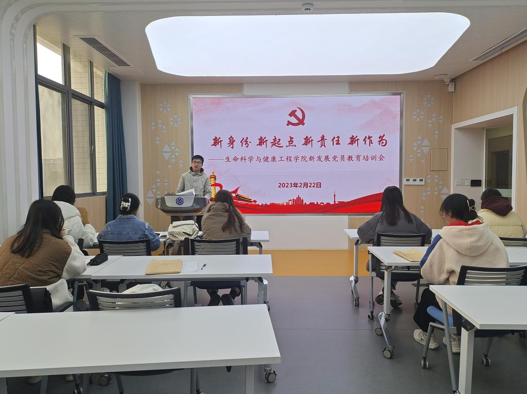 为加强对新发展党员的培养和教育,进一步提升新发展党员思想意识水平,增强新发展党员的使命感、荣誉感,2月22日下午,生命科学与健康工程学院在学院306会议室召开“新身份新起点 新责任新作为”新发展党员教育培训会,会议由辅导员贾琪主持,2022年底新发展的10名预备党员参会。