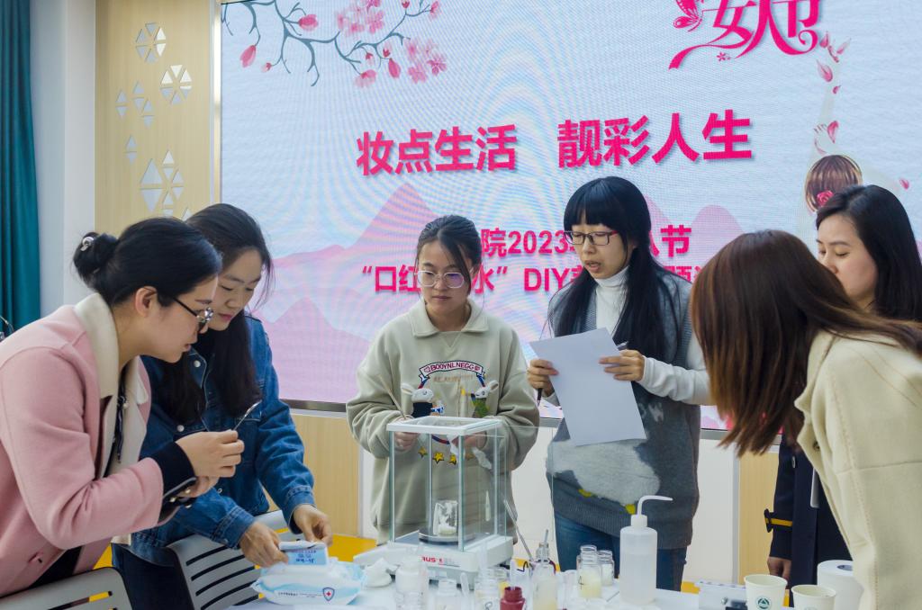 微风渐暖、花香渐浓。在生机盎然的3月,为丰富女教工精神文化生活,提高艺术修养和生活乐趣,生命科学与健康工程学院分工会于15日下午在学院306室组织开展了以“妆点生活 靓彩人生”为主题的香水&口红DIY美妆活动。活动专门邀请了化学材料与工程学院储鸿和陈凤凤两位老师进行现场指导,学院女教工积极参与其中,度过了一段欢声笑语的午后时光。